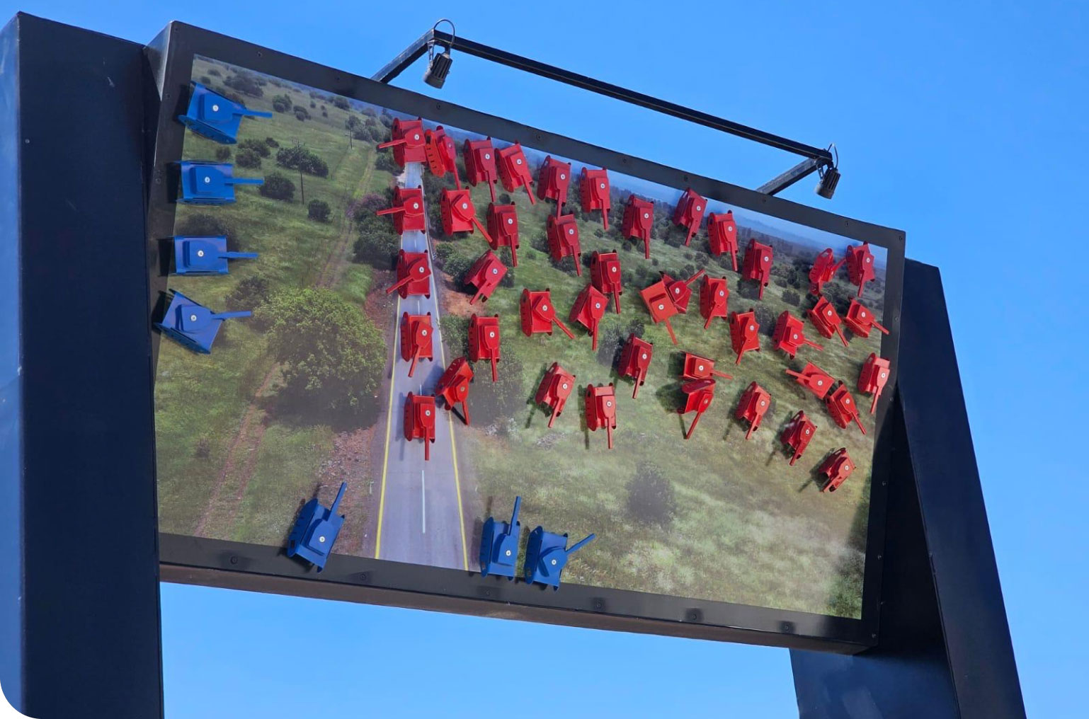במקום מוצב טנק צנטוריון -שוט קל ,ששמש את כוח טייגר, לוח תצלום אוויר עם הדמיה של הקרב ומסבירן